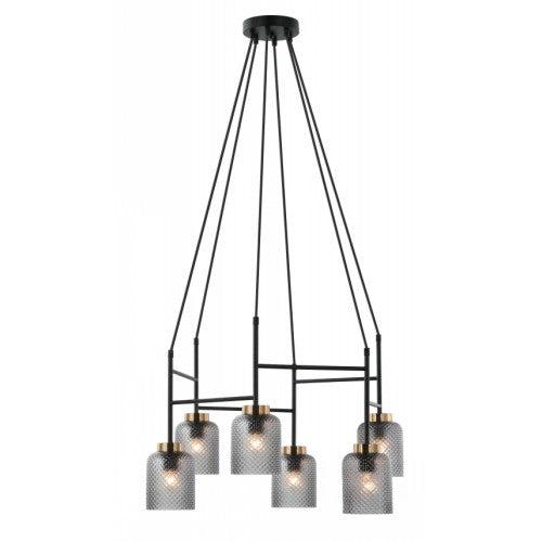 Lámpara colgante negro mate y latón satinado, 6 luces, G9 5W