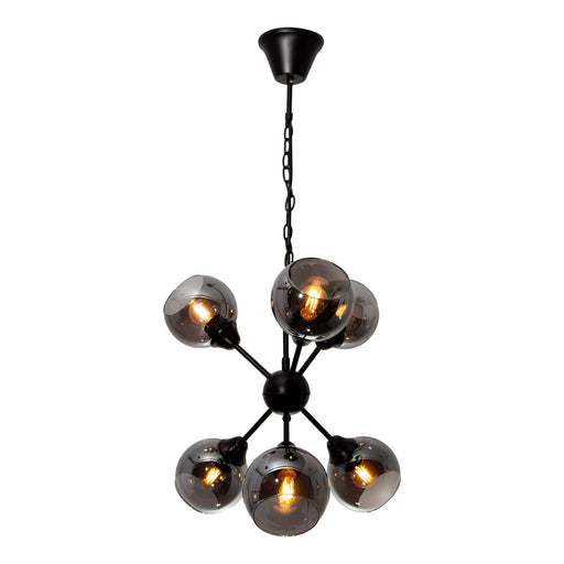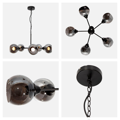 Lámpara Colgante Araña Negro Vidrio Ahumado 40w E27 5 Luces