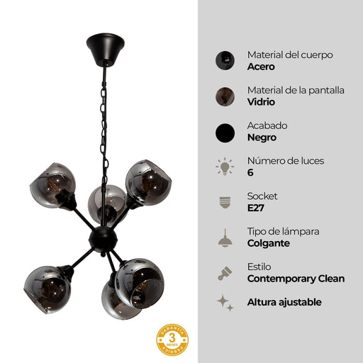 Lámpara Colgante Moderno Negro 60w E27 6 Luces