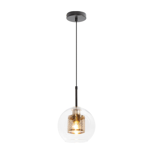 Esta moderna lámpara colgante de 1 luz, diseñada en acero, vidrio con acabados en negro y bronce dorado, es una excelente opción para darle un toqu...