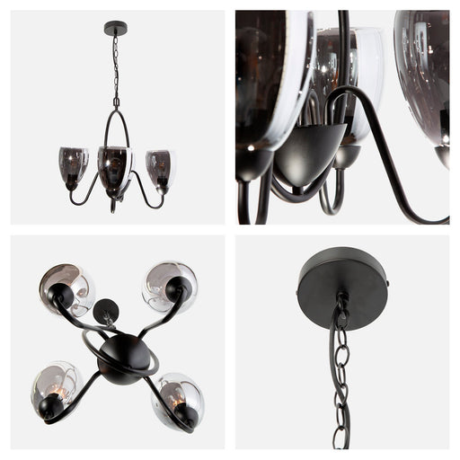 Lámpara Colgante Negro Vidrio Ahumado 60W E26 4 Luces