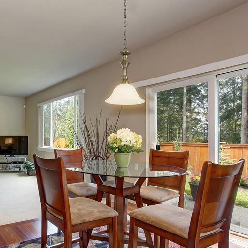 ¡Añade modernidad y estilo a tu hogar con esta hermosa lámpara colgante de 1 luz de 60w! Diseñada con acero, vidrio y acabados en níquel satinado y...