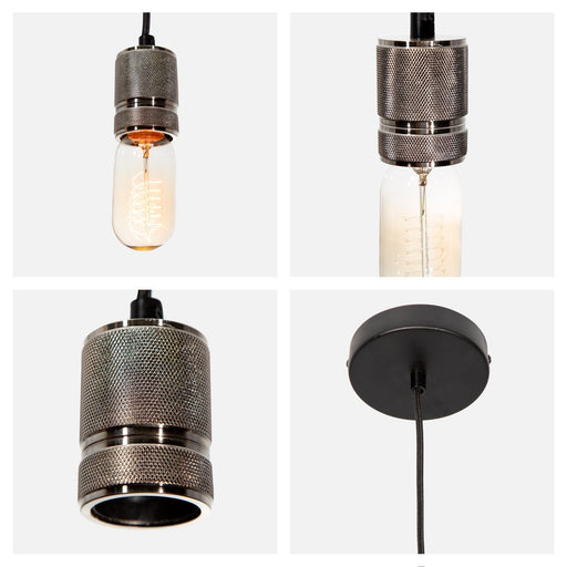LAMP. COLGANTE NEGRO CEPILLADO 5L E27 60W