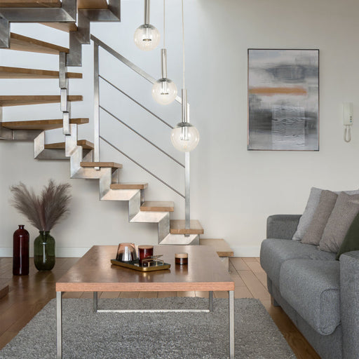 Esta hermosa lámpara colgante de 3 luces de 40W es perfecta para un ambiente moderno. Está diseñada en acero con acabados en cromo y vidrio para un...
