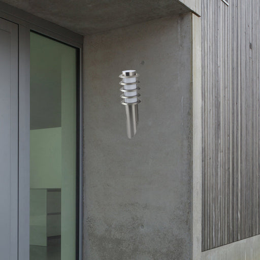 Lámpara de pared de 1 luz de 60W, diseñada en acero inoxidable, plástico con acabados en plateado, Ideal para la entrada, jardín, patio o terraza, ...