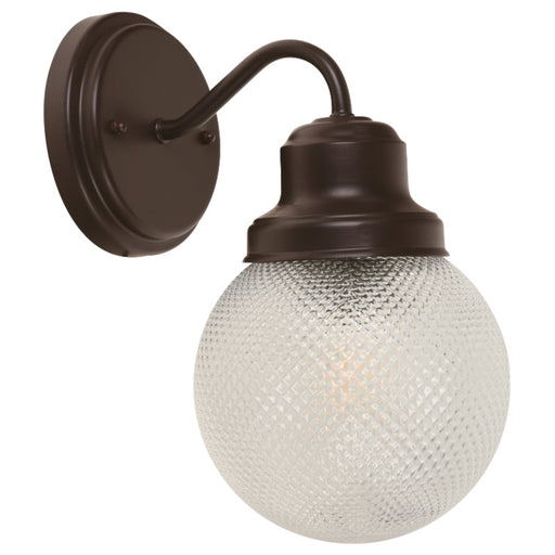 Lámpara de pared de una luz de 60w, diseñada en acero y vidrio, con acabados en chocolate y transparente, ideal para tu portal, terraza o pasillo c...