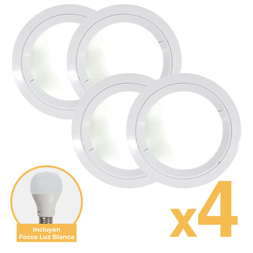 Kit 4 Bases Spot Empotrable Blanco + 8 Focos E27 6500K 5W