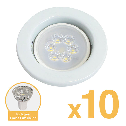 Kit 10 Base Empotrable Spot 50W Blanco + 10 Focos Gu10 3000k