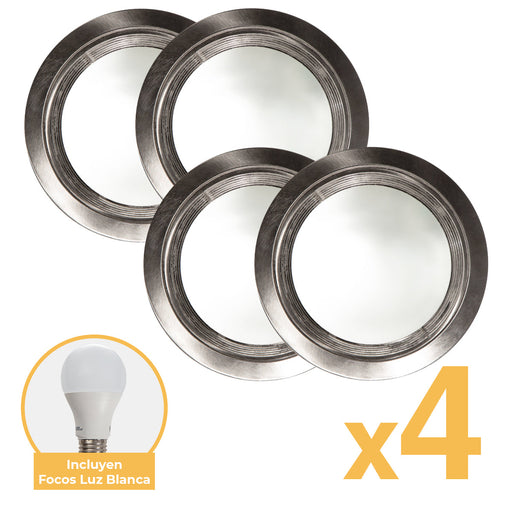 Kit 4 Bases Spot Empotrable Níquel + 4 Focos E27 6500K 5W