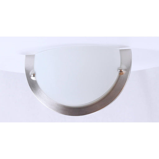 Lámpara de pared de una luz de 60W, diseñada en metal y vidrio, con acabados en níquel satinado y blanco, ideal para decorar tu sala, comedor o pas...