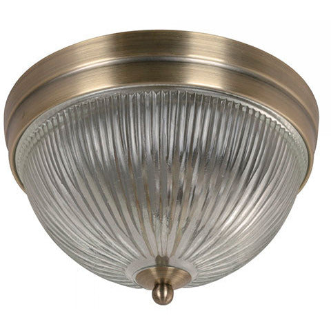 Lámpara de techo tipo plafón de 1 luz con un máximo de 40w, diseñada en acero, vidrio, con acabados en bronce antiguo y transparente, ideal para tu...