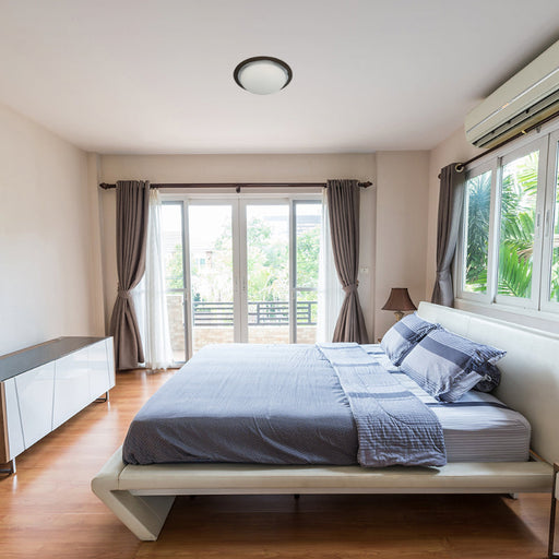 Lámpara de techo tipo plafón de una luz con un máximo de 60w, diseñado en negro cepillado y pantalla blanca, ideal para tu sala, lobby o comedor co...