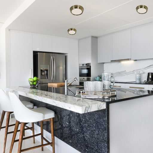 Lámpara de techo LED marca IKELITE de una luz de 12w, diseñada en acero, acrílico y acabados en bronce antiguo y blanco, ideal para tu habitación, ...