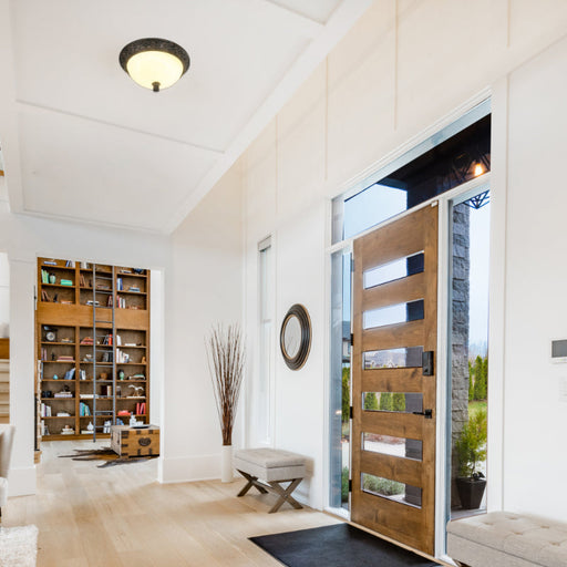 Lámpara de techo tipo plafón de una luz con un máximo de 60w, diseñado en vidrio y plástico, con acabados en plateado, ideal para tu sala, lobby o ...