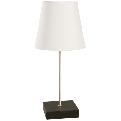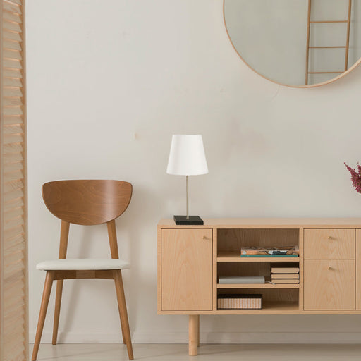 Lámpara de mesa de una luz de 40W, diseñada en acero y tela, con acabados en níquel satinado y blanco, ideal para tu sala, lobby o habitación con u...