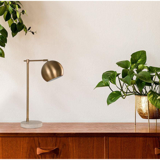 Lámpara de mesa de una luz con un máximo de 40W, diseñada en acero y marmól con acabados en bronce antiguo, ideal para tu sala, lobby o recámara co...
