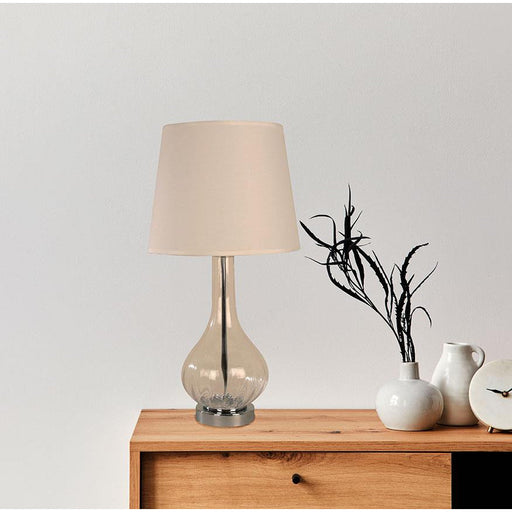 Lámpara de mesa de 1 luz con un máximo de 60W, diseñada en vidrio, acero, con acabados en ahumado y cromo, ideal para tu alcoba o comedor con un am...