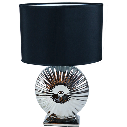 Lámpara de mesa de una luz de 60W, diseñada con tela y cerámica con colores negro y cromo, ideal para decorar tu sala, comedor o estudio con ambien...