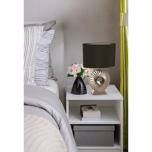 Lámpara de mesa de 1 luz con un máximo de 60W, diseñada en cerámica, acero, con acabados en blanco y cromo, ideal para tu alcoba o sala con un ambi...
