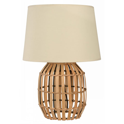 Lámpara de mesa de 1 luz con un máximo de 60W, diseñada en bamboo, acero, con acabados en negro y crema, ideal para tu alcoba o sala con un ambient...