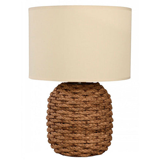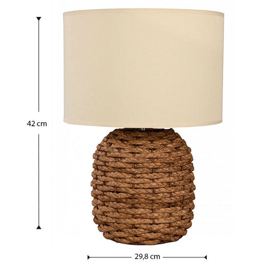 Lámpara de mesa marca Ikelite de una luz con un máximo de 60W, diseñada en acero, soga y rattan, con acabados en chocolate y blanco, ideal para tu ...