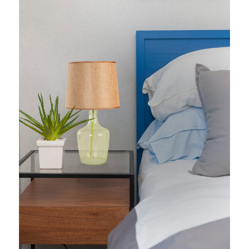 Lámpara de mesa de una luz de 60W, diseñada en vidrio y tela, con acabados en color verde, ideal para decorar tu sala, habitación o comedor con un ...