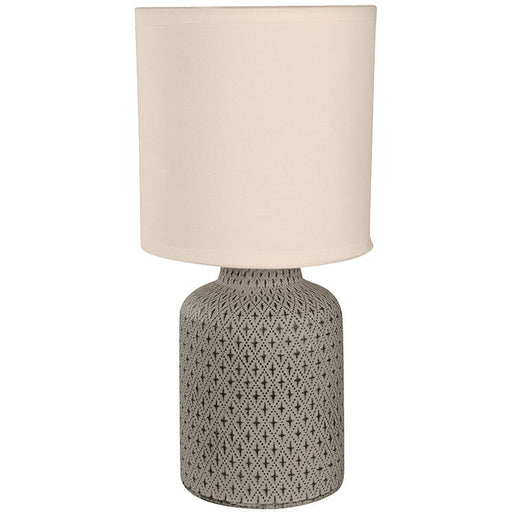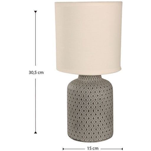 Lámpara de mesa marca Ikelite de una luz con un máximo de 60W, diseñada en tela y cerámica, con acabados en gris, ideal para tu habitación, sala o ...