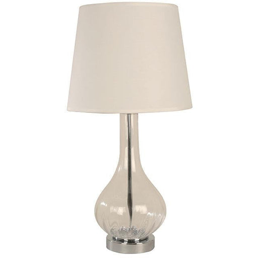 Lámpara de mesa de 1 luz con un máximo de 60W, diseñada en acero, vidrio y con acabados en transparente y cromo, ideal para tu alcoba o comedor con...