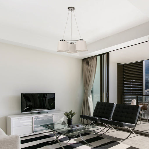 Lámpara colgante marca ARTELUCE de 3 luces con un máximo 40w, diseñada en acero y pantallas decorativas en color blanco, además de una atractiva ba...