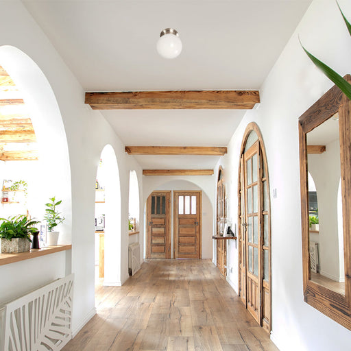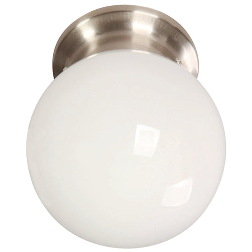 Lámpara de techo de 1 luz de 60W, diseñada en metal, vidrio con acabados en níquel satinado y blanco, ideal para decorar tu pasillo, lavandero, cua...