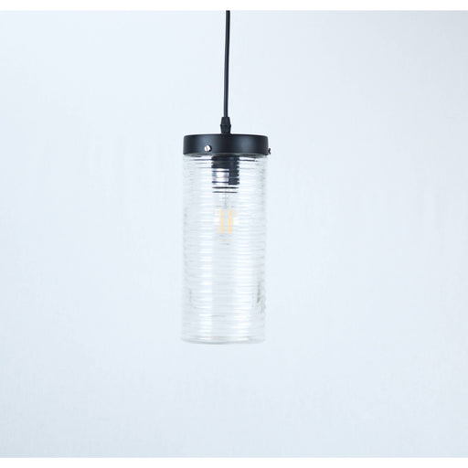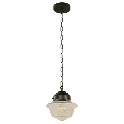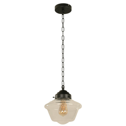 Lámpara colgante marca IKELITE de una luz con un máximo de 40w, diseñada en acero, vidrio y color negro mate, con acabados de pantalla transparent...