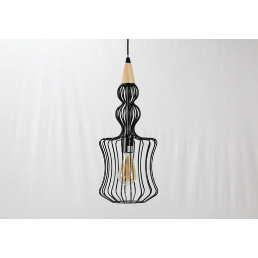 LAMP. COLGANTE NEGRO+MADERA 1L E27 60W