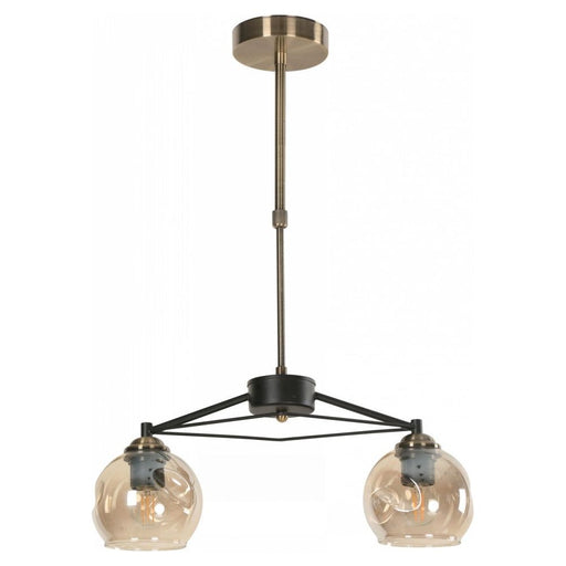 Lámpara de techo de 2 luces de 40W, diseñada en acero , vidrio con acabados en bronce antiguo y negro, para un ambiente moderno. Rosca E27.