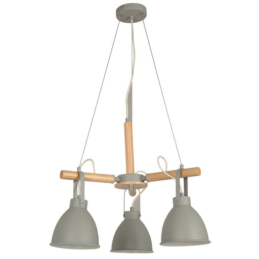 Lámpara de techo de 3 luces de 60W, diseñada en acero , madera con acabados en gris y madera clara, para un ambiente moderno. Rosca E27.