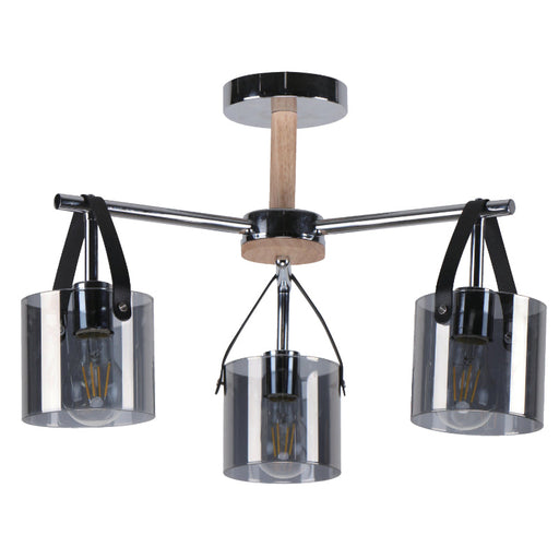 Lámpara de techo tipo semi-flush de 3 luces con un máximo de 40W, diseñada en cromo con pantallas de vidrio ahumado, ideal para tu sala, lobby o ha...