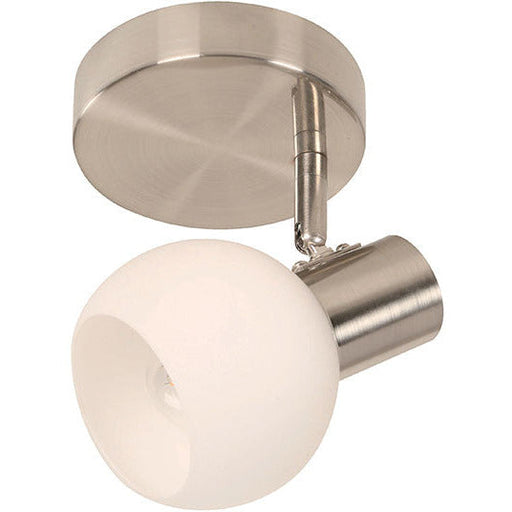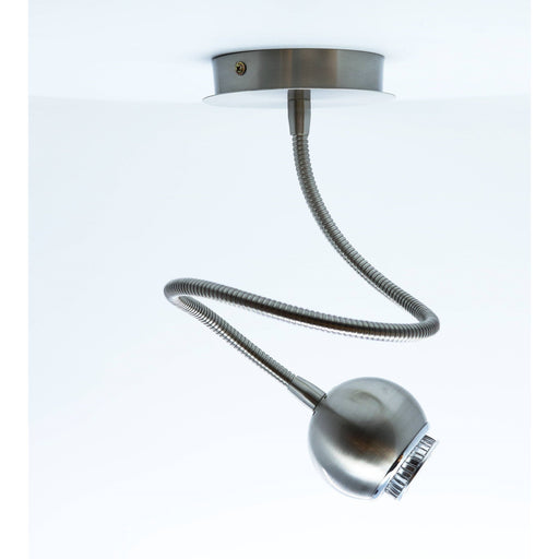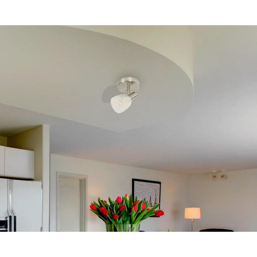 Lámpara de techo dirigible de una luz de 50W, diseñada en metal y con acabados en color níquel satinado y cromo, ideal para salas o pasillos, con u...
