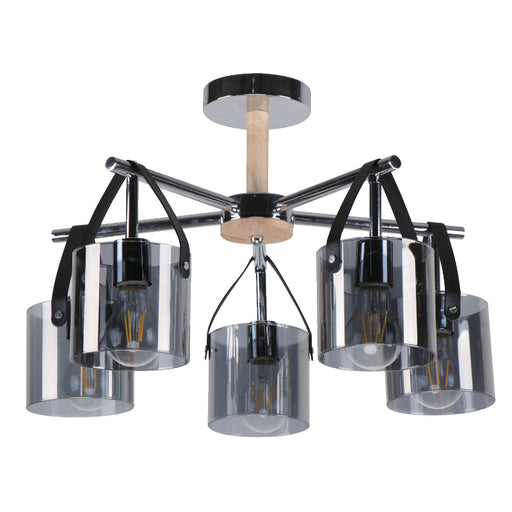Lámpara de techo tipo semi-flush de 5 luces con un máximo de 40W, diseñada en cromo con pantallas de vidrio ahumado, ideal para tu sala, lobby o ha...