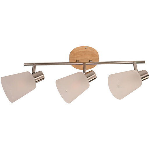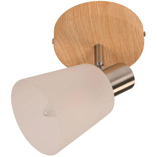 Lámpara de techo tipo spot de 1 luz con un máximo de 40W, diseñada en níquel satinado y madera, son reflectoras dirigibles, ideal para tu lobby, sa...