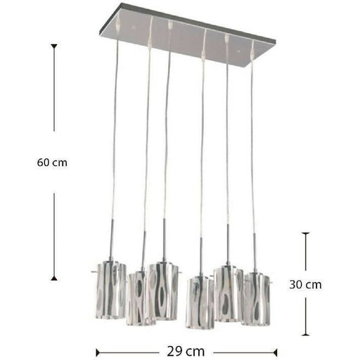 Esta lámpara colgante cromo 6L E27 60W es una opción moderna para cualquier habitación. Esta lámpara cuenta con un cuerpo de metal cromado que le d...