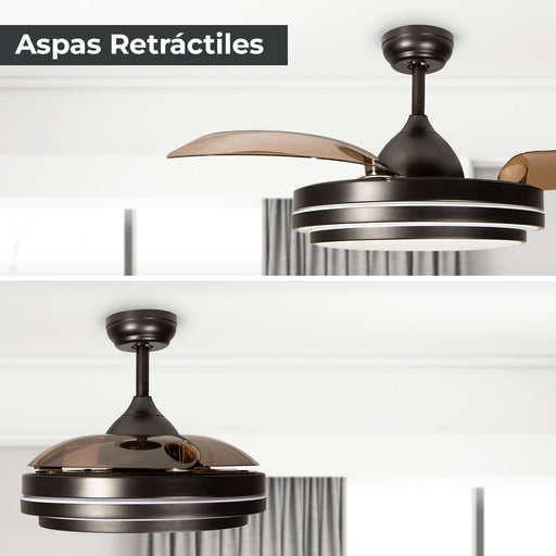 Ventilador De Techo Retráctil 42", Luz LED, Marrón, 3 Aspas, 6 Velocidades