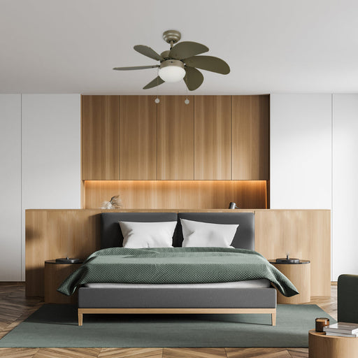 Ventilador de techo marca DESIGNER de 6 aspas de 32", diseñado en metal, vidrio y mdf, con acabados en plateado ideal para decorar tu habitación, c...