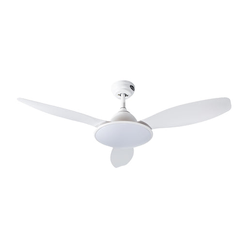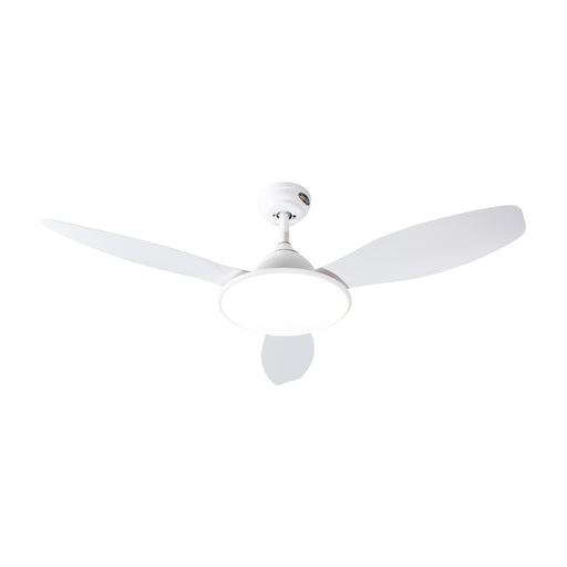 Ventilador de techo 48", 3 aspas, luz LED, control remoto, acabado blanco mate, 6 velocidades