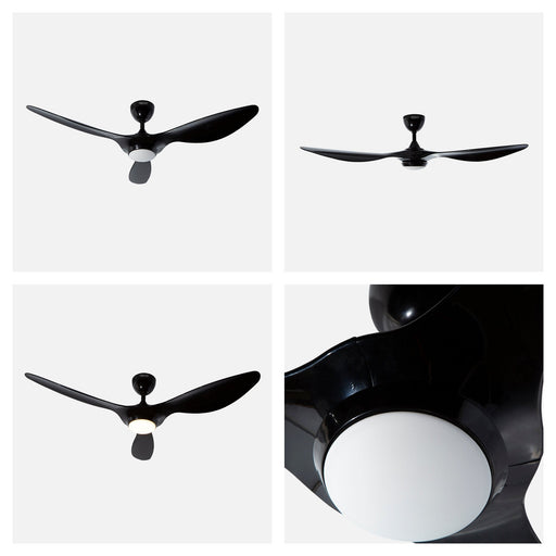 Ventilador de techo con luz LED, 52" acabado negro, con control remote, 3 aspas