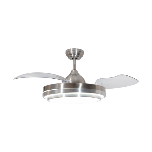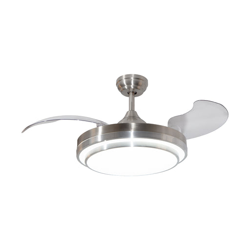 Ventilador de techo retráctil 42”, LED 3000K/4000K/6500K, acabado níquel satinado, 6 velocidades, control remoto